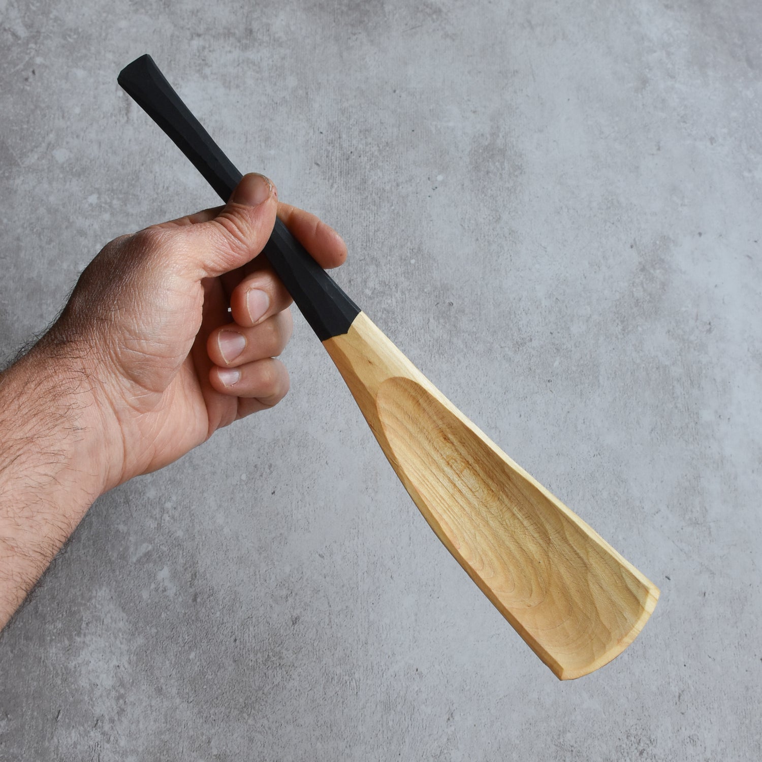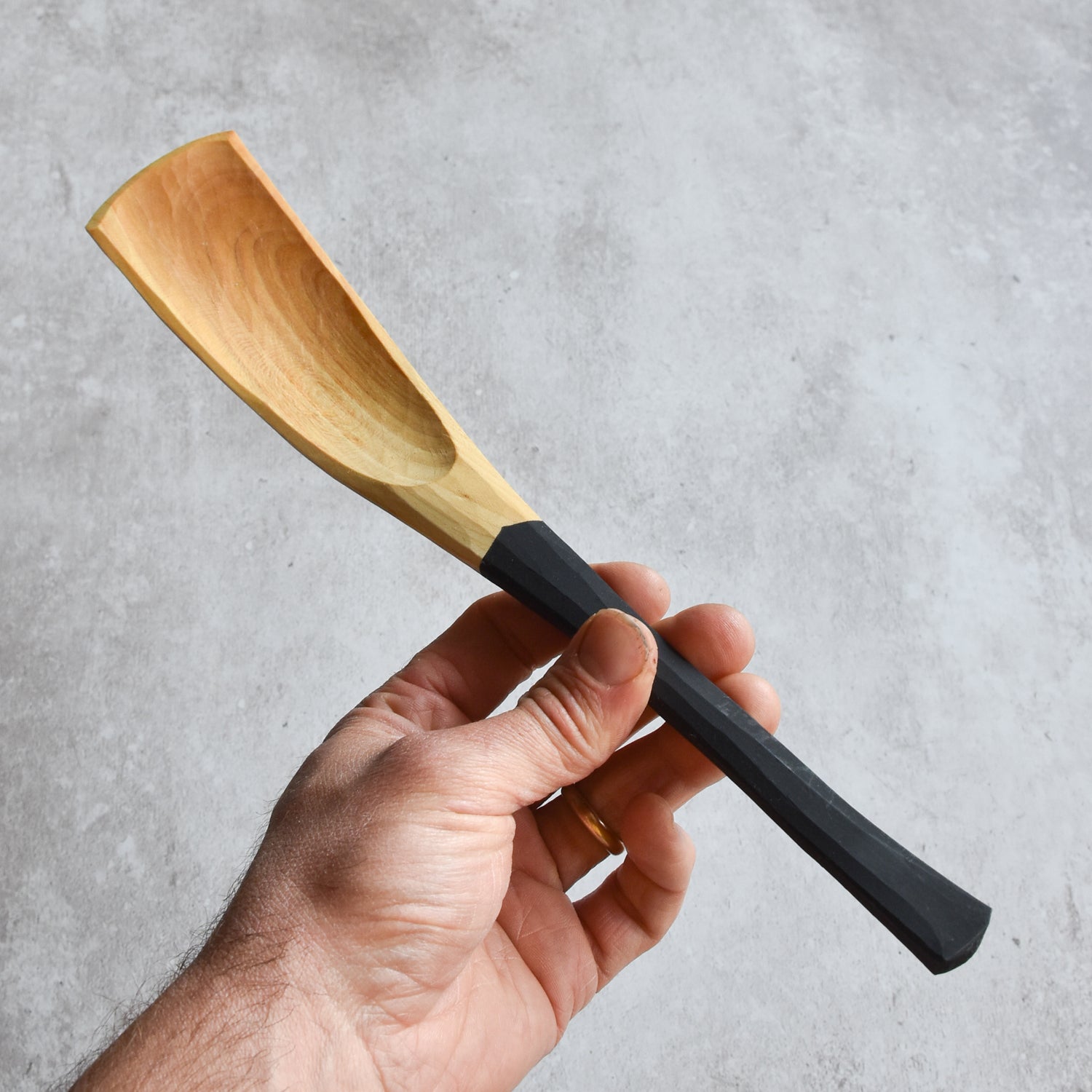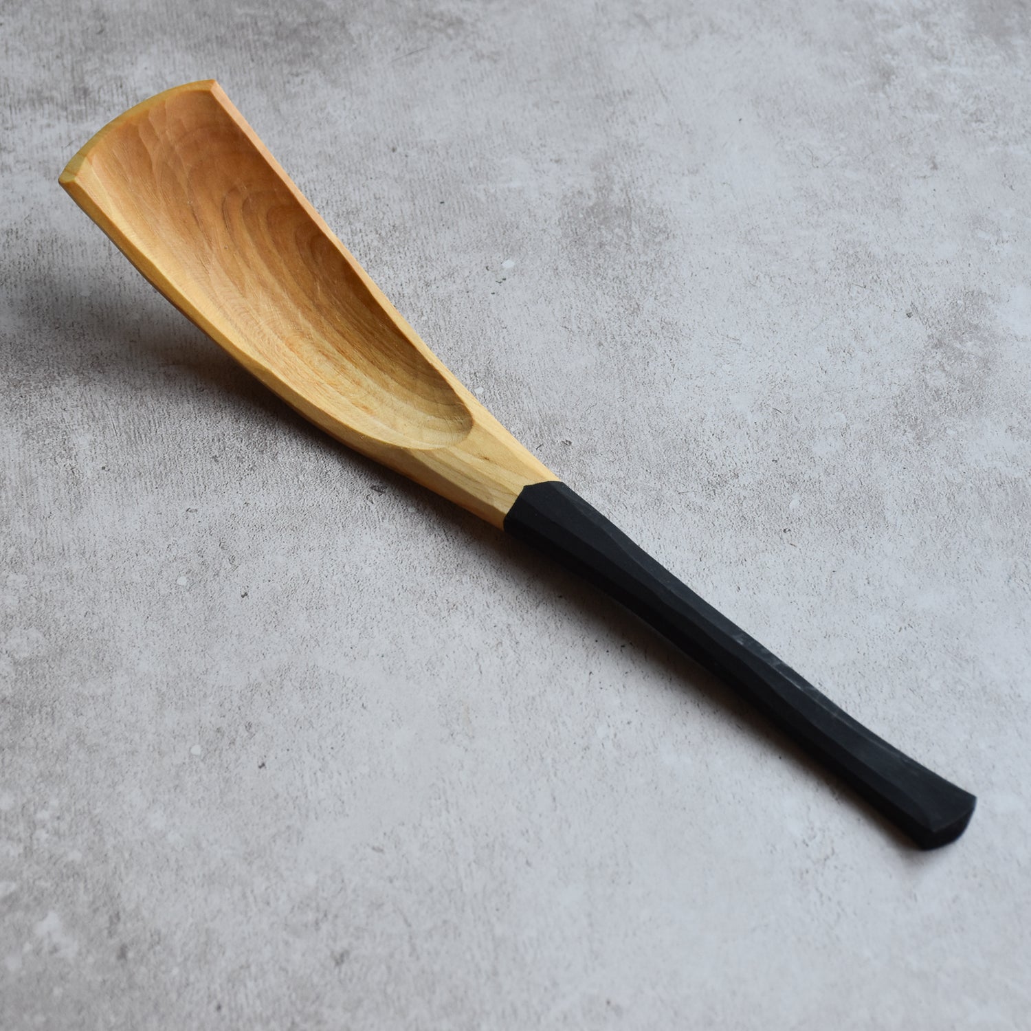 Sustainably sourced from locally grown trees in South Devon, UK. The trees I carve almost always grew within a 20 mile radius from my workshop, meaning very little carbon footprint from tree to spoon. These spoons are hand carved with 3 hand tools: an axe, hook knife and straight knife from log to spoon.