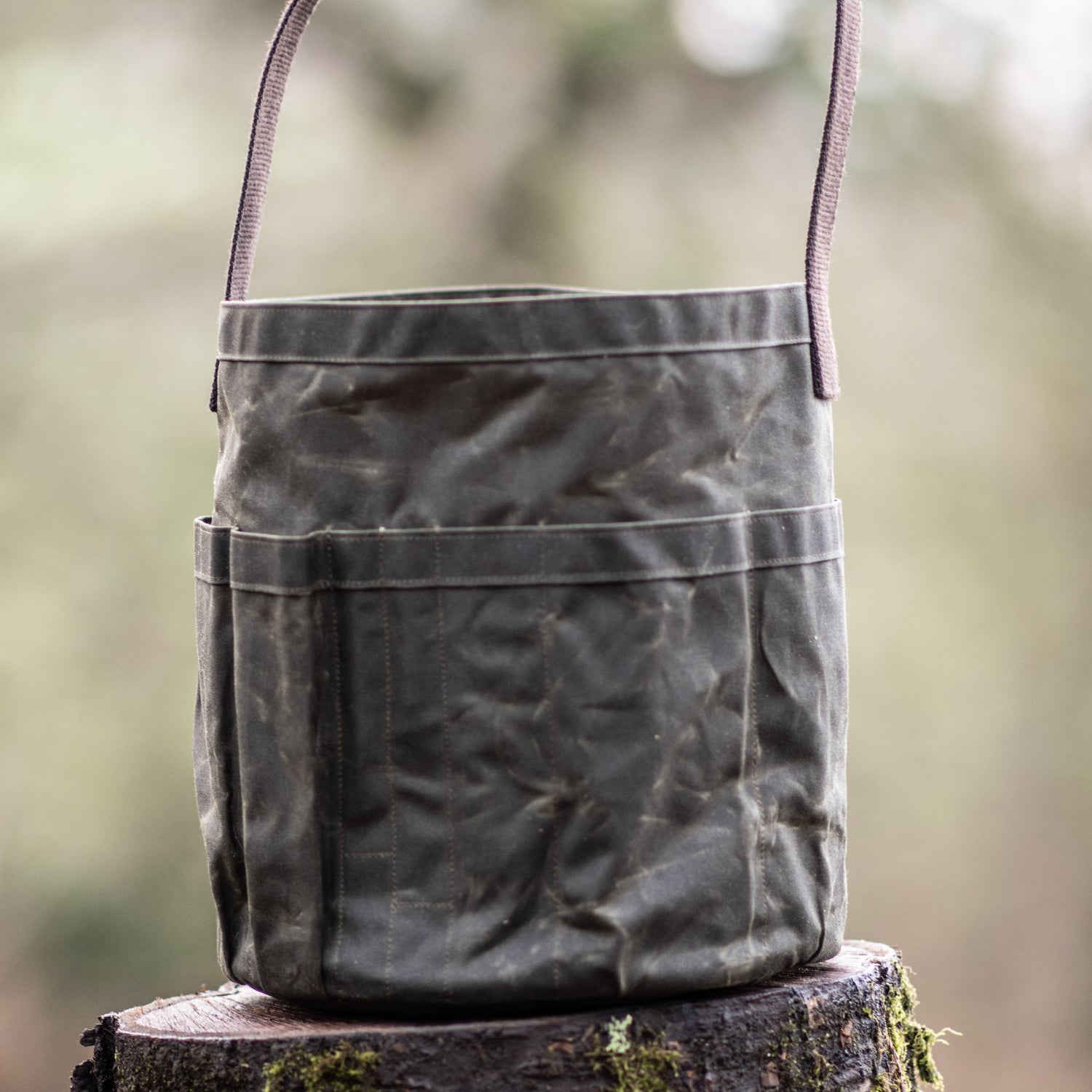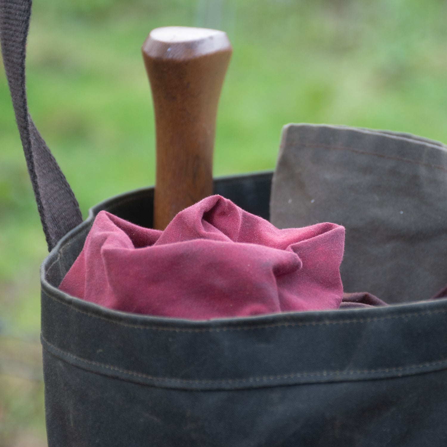 The bag features a sturdy woven carry handle which can be carried over the shoulder or simply carried in the hand. The bottom is padded and double layered waxed canvas to keep your tools dry and protected on wet ground. The canvas is heavy duty and will go the distance in storing and protecting your tools