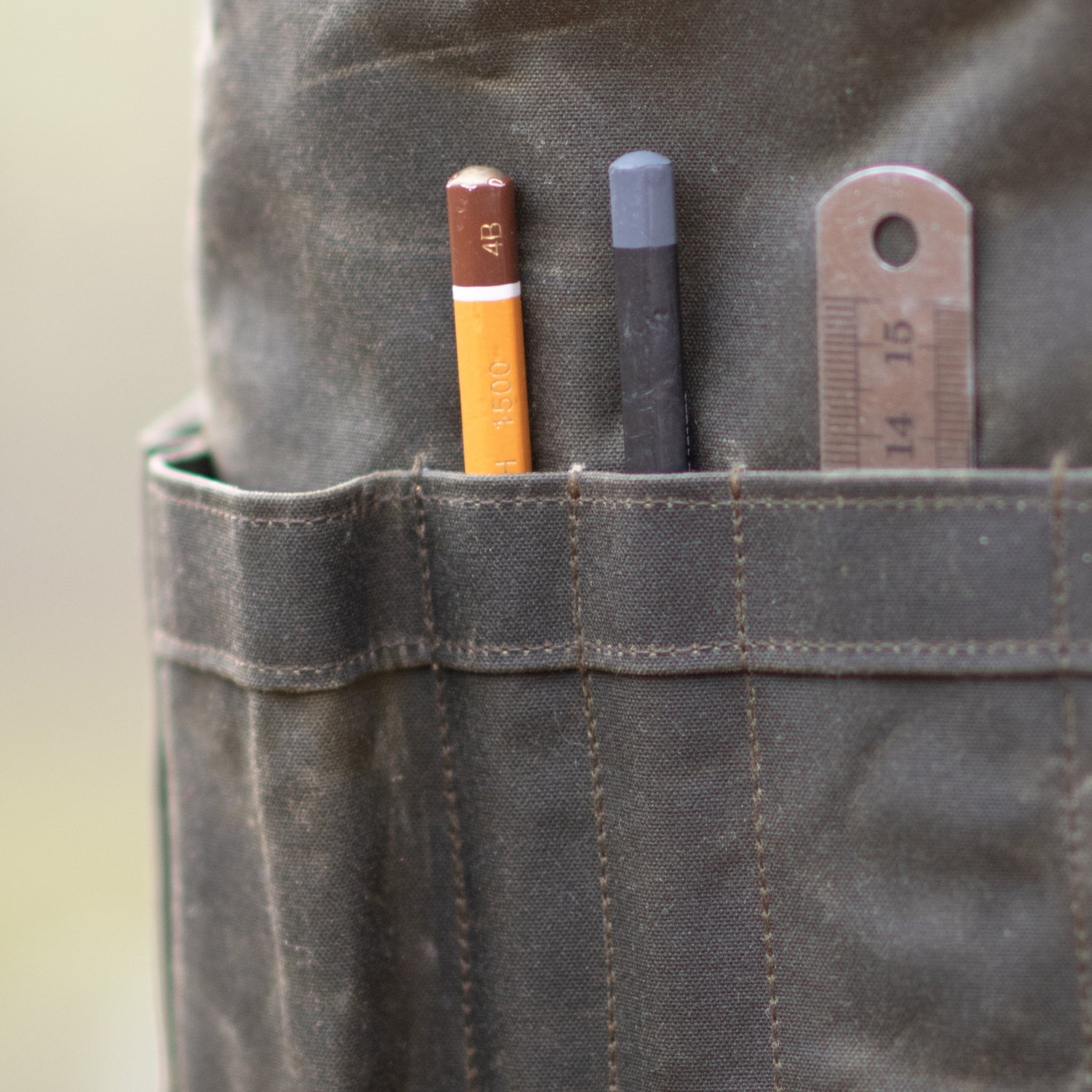There are an additional 10 pockets around the outside plus 2 dedicated slots for pencils and one ruler, ample room for storing a phone, sharpening stones, tea bags, first aid - plasters, you name it!