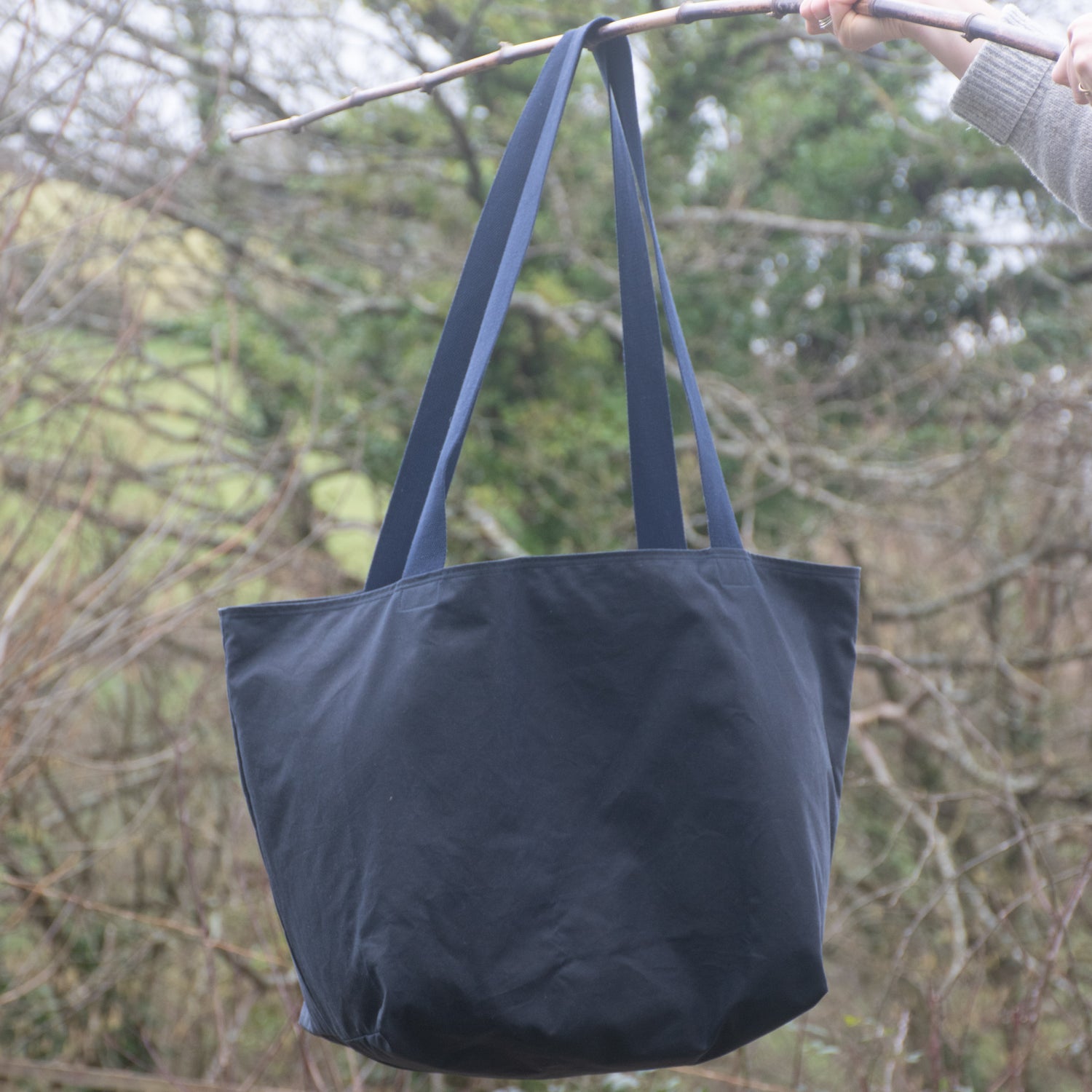 Handmade in Devon from premium heavy duty canvas in beautiful Deep Blue colour with sturdy woven carry handles, this bag puts all your essentials into one large compartment: chuck them in and go!
