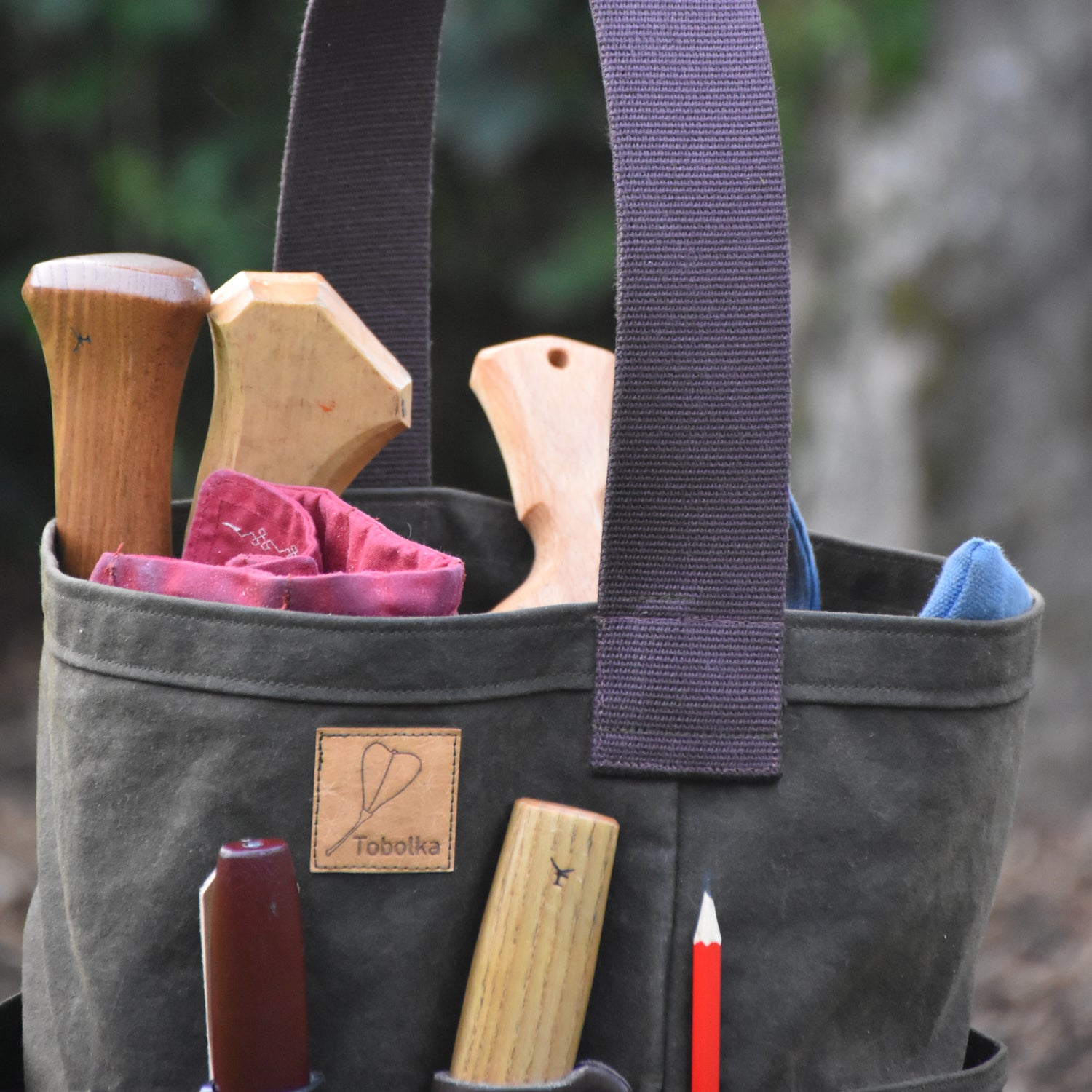 Building on the success of the first edition, the Tobolka 2.0 tool bag has 1 main compartment for storing your tools, it has ample space for 3 standard size tool rolls, 2 axes and a folding saw, and an adze for good measure! There are an additional 10 pockets around the outside with dedicated slots for pencils, a smart phone slot, sharpening stones, tea bags, first aid plasters, you name it.