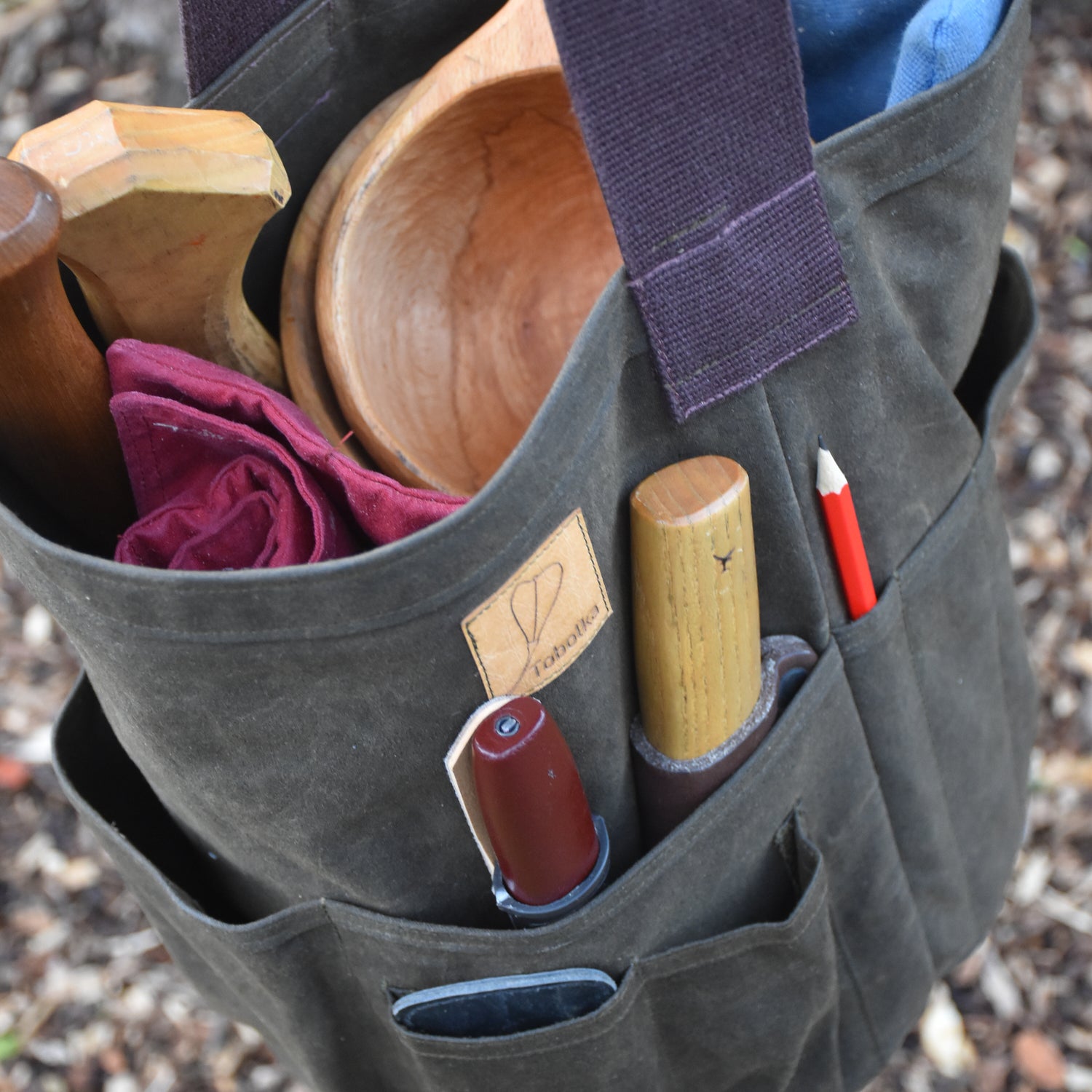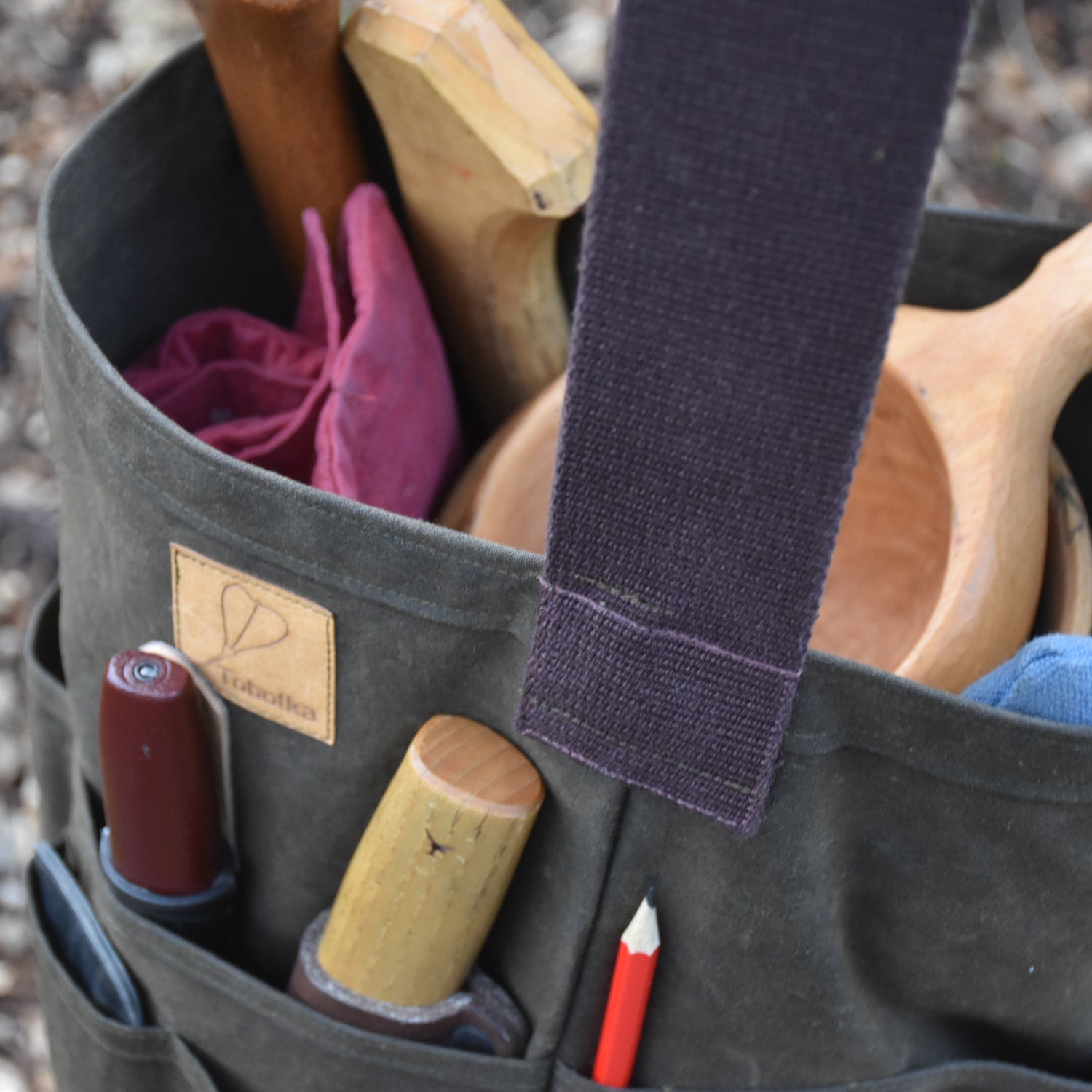 Handmade in Devon from premium heavy duty canvas in beautiful dark Olive Green, this bag gives your tools a secure and loving home!